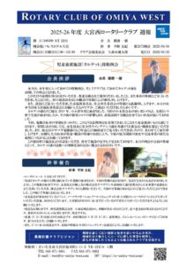 2025年9月22日 / 最終更新日時 : 2025年9月11日 rc-ow 週報 2871例会 2025年9月1日(月) 2025年9月1日(月) 第2871例会 第2770地区 公共イメージ部門委員長 青木 健志様(桶川イブニングRC)をお迎えし、卓話をいただきました。